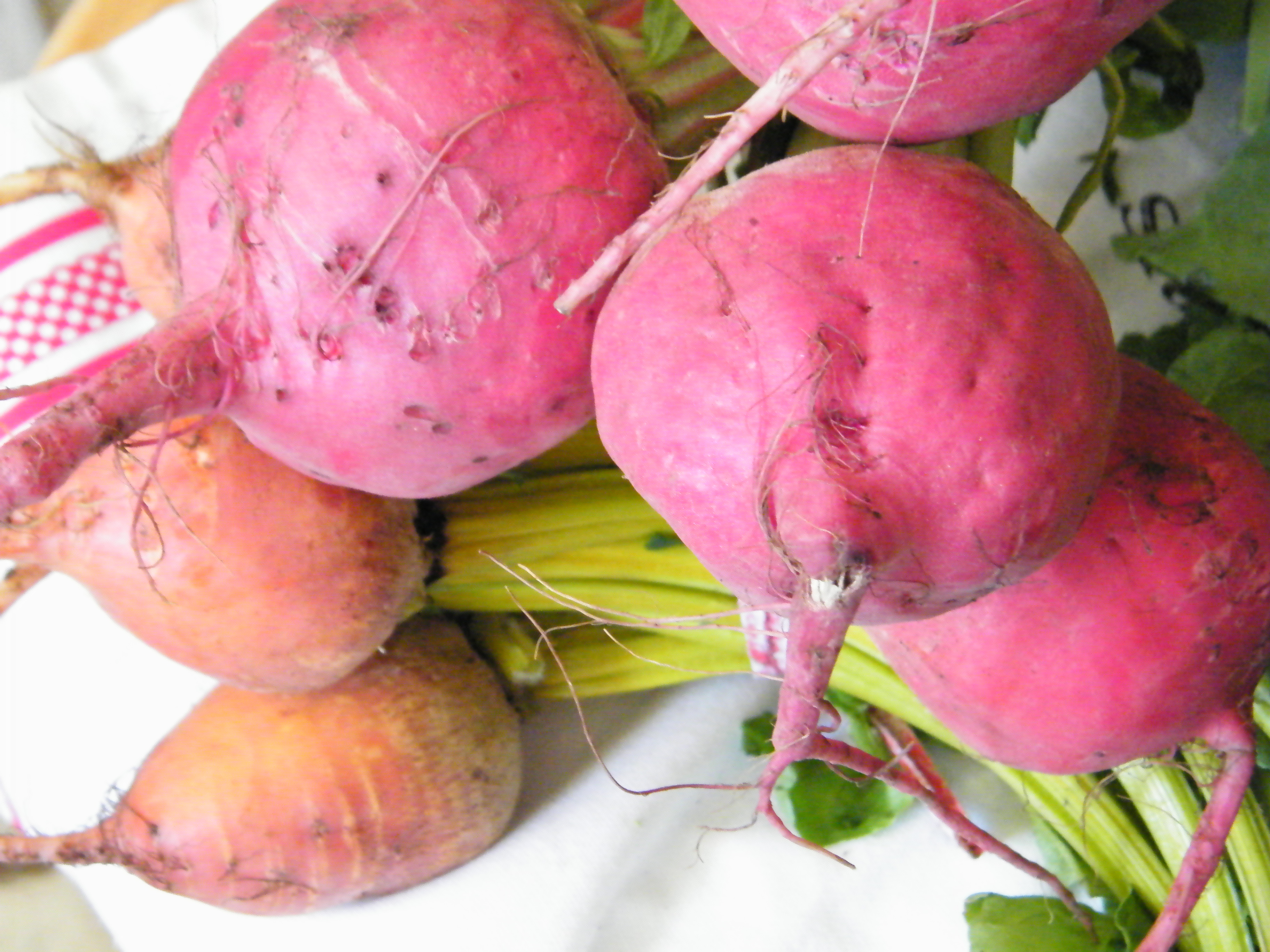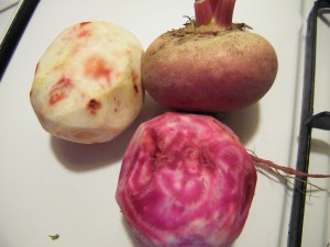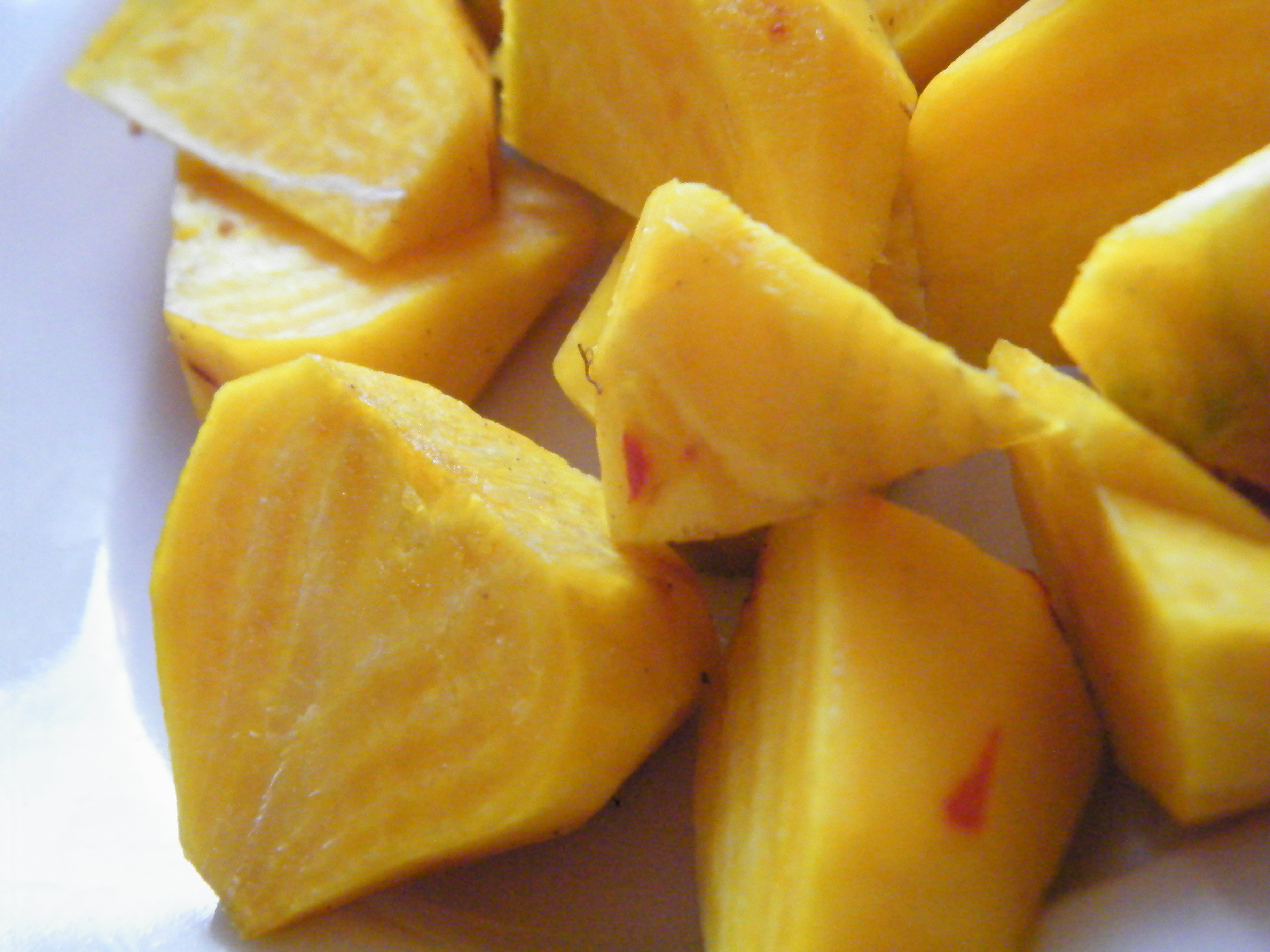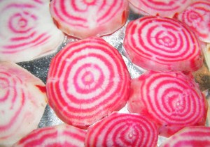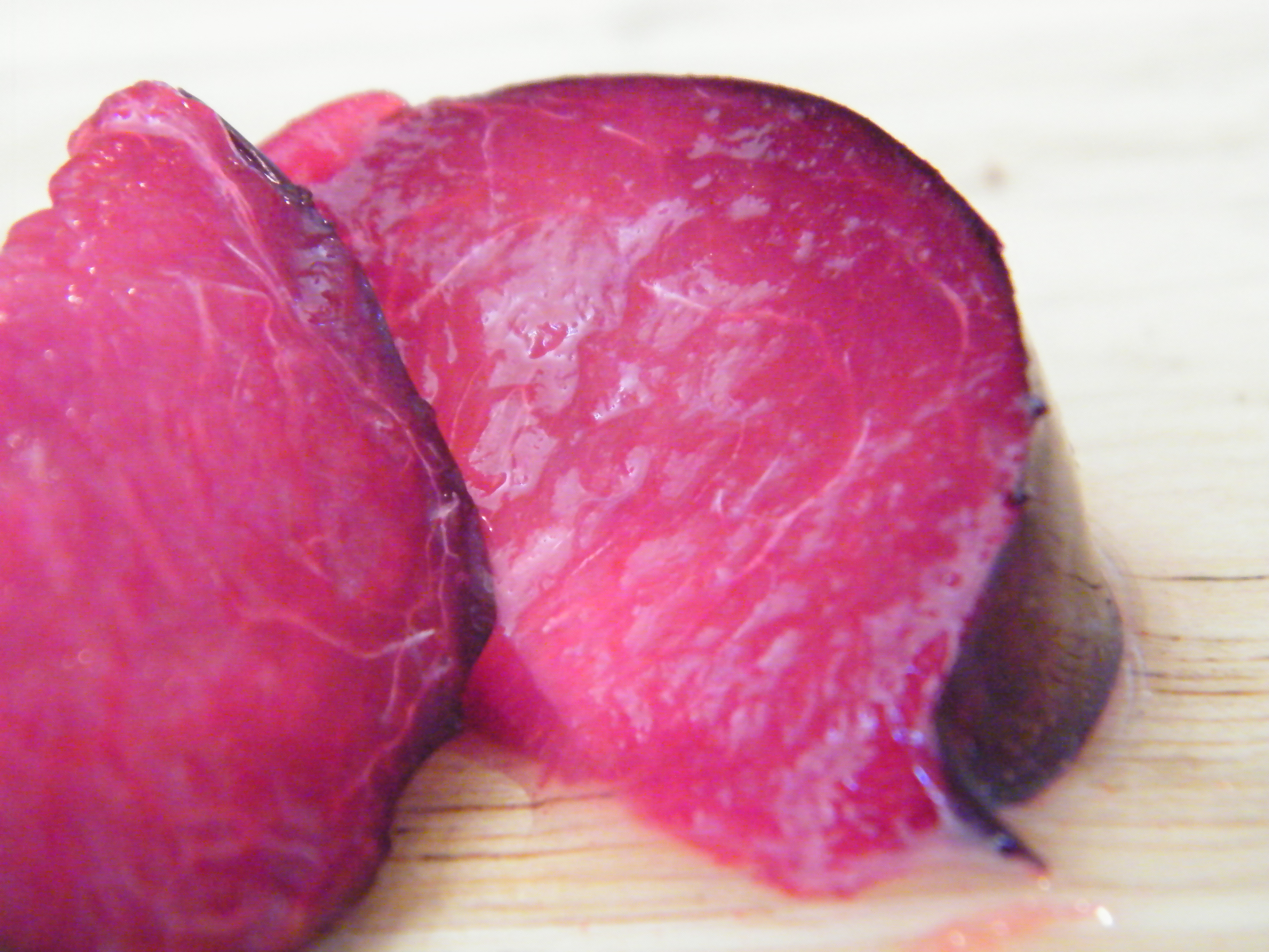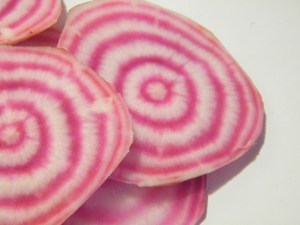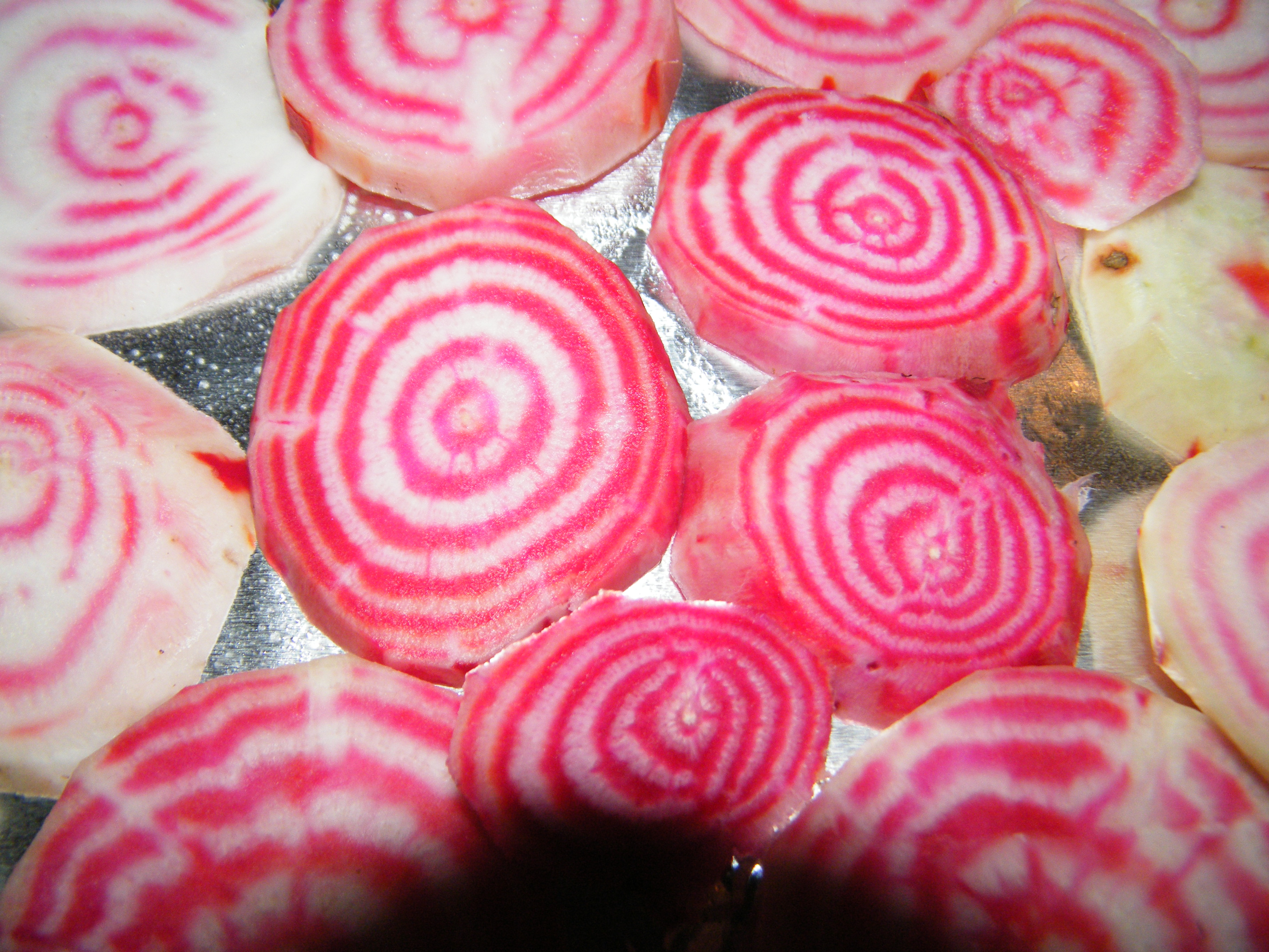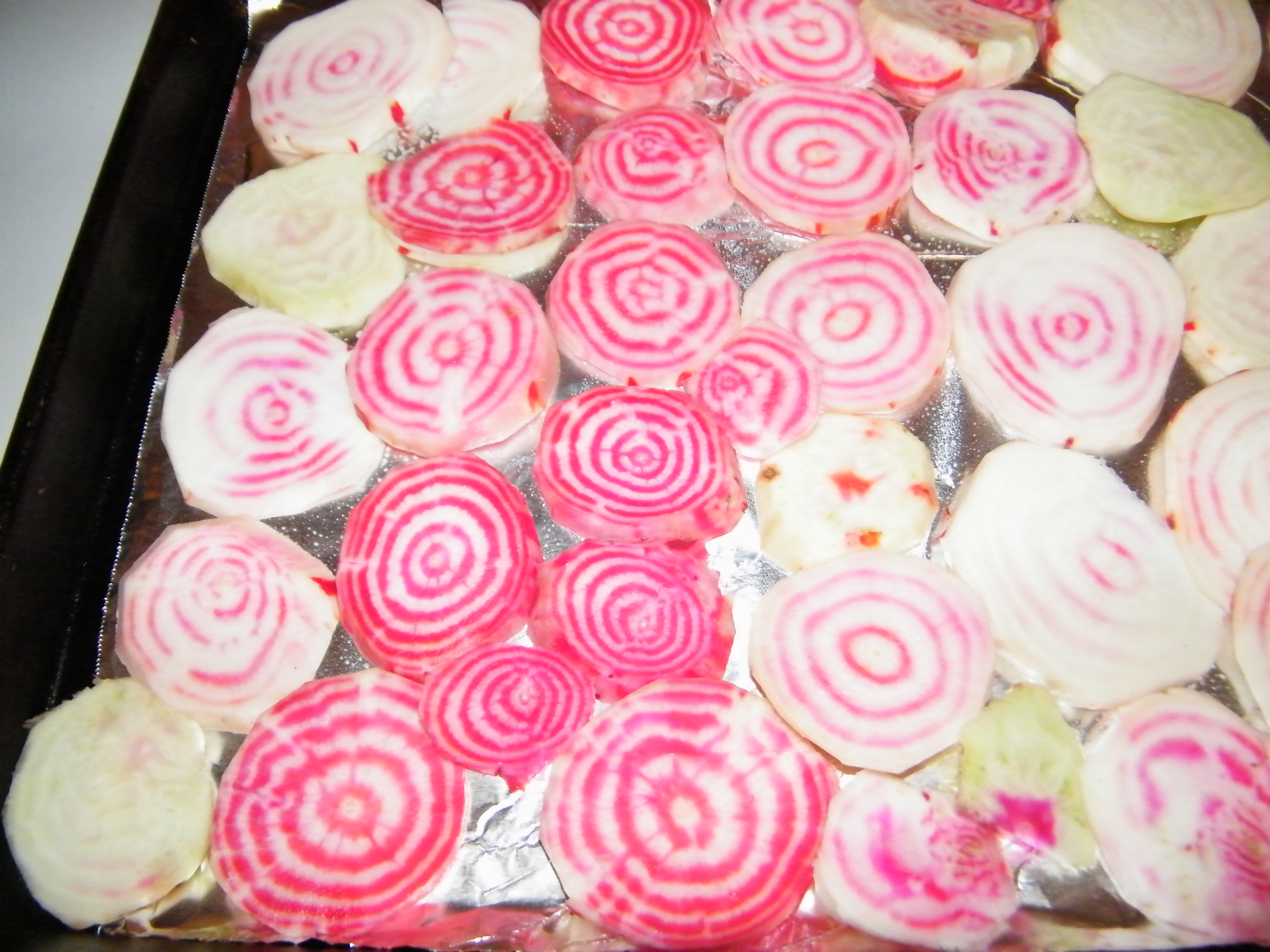 I like to saute in olive oil and garlic and toss into practically any dish – it does take a bit to cook through to the center if you slice too thick, so try to keep them just a cm or 2 in width if you’re slicing by hand. Half-inch rounds are just too big. They’re also nice tossed with olive oil and salt and roasted on 400 or 450 like beet chips until crisp, or crisp-ish really. They’re a great alternative to potato chips or some other horrible for you snack.