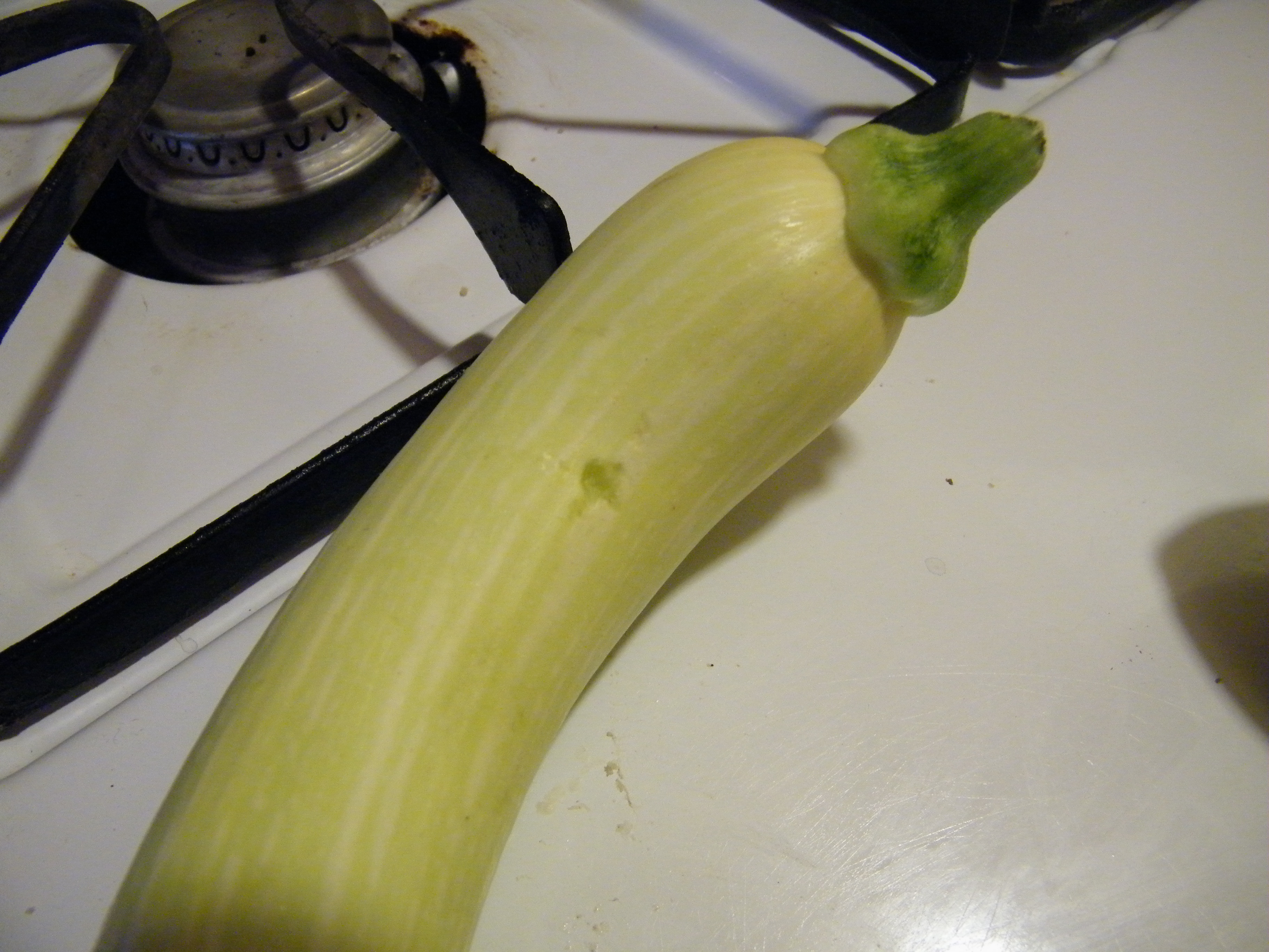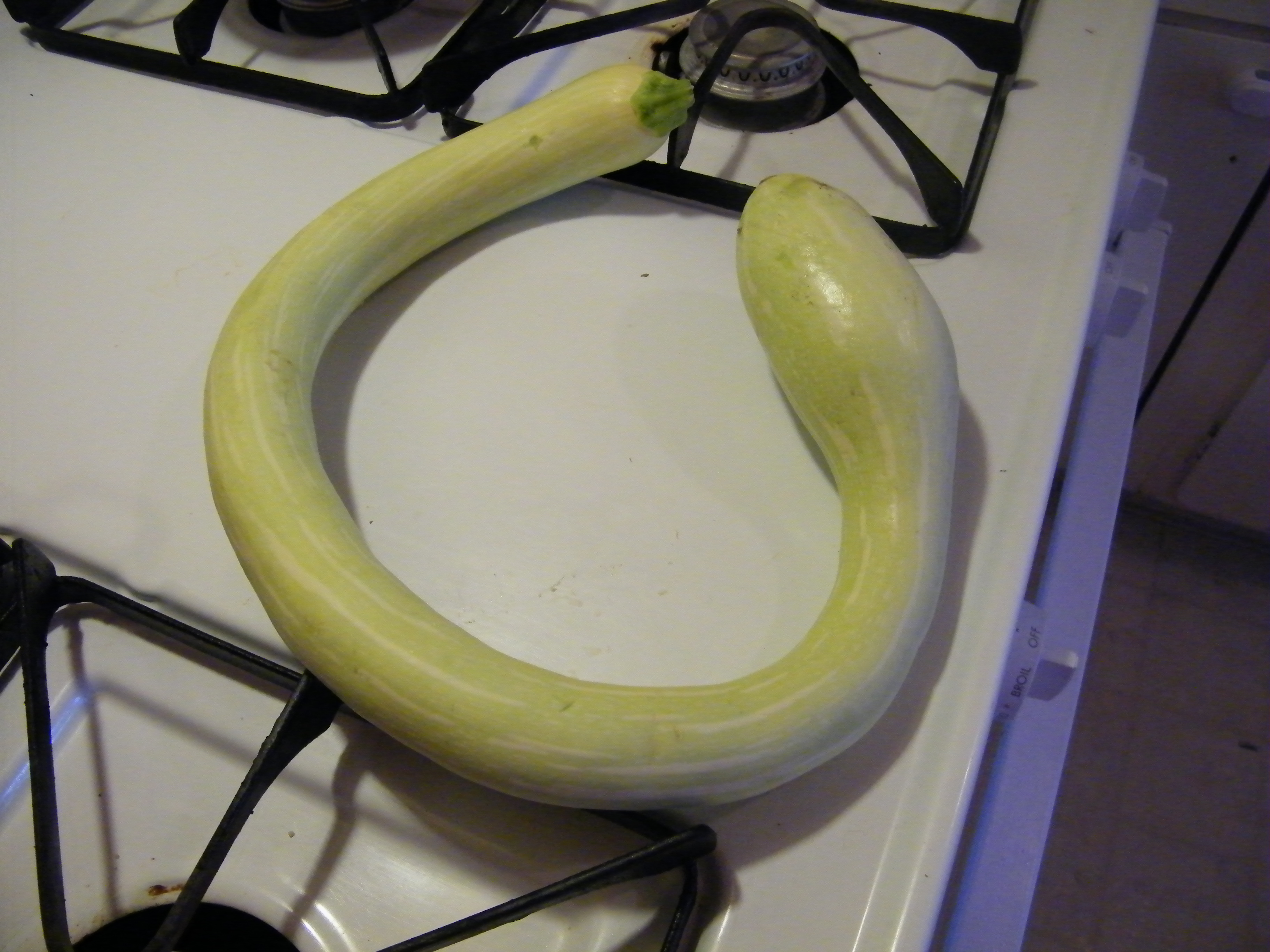 Which I guess is a gigantic tangent to: How I Found a New Yummy Zucchini. Usually called Tromboncino Zucchini or Zucchetta Rampicante, it’s also sometimes just called Squash with some horribly misspelled version of one of those names in parentheses on the farmer’s handwritten sign.