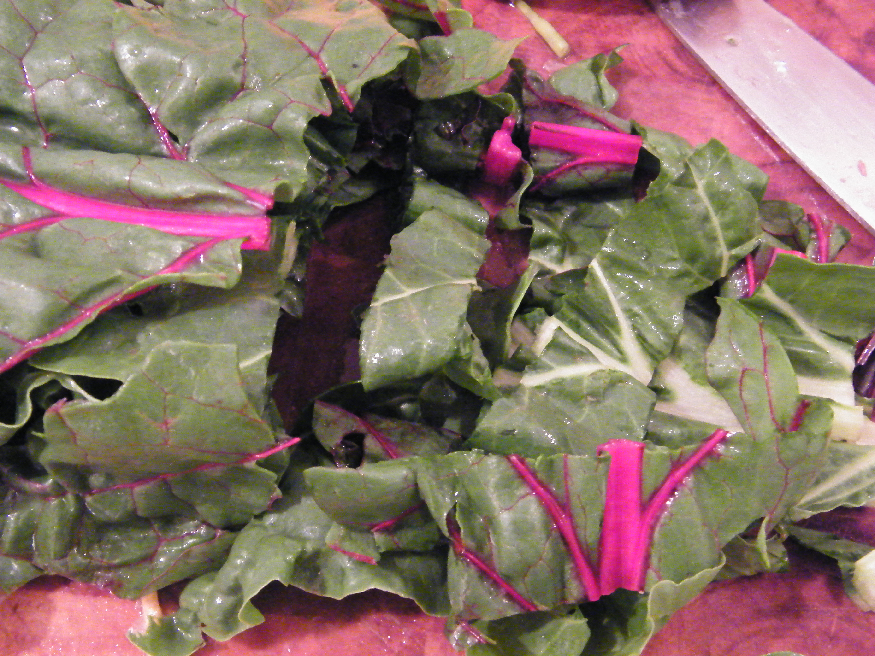 - Beet greens, stalks removed and greens sliced or torn into bite-sized pieces