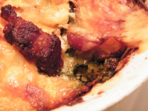 Notes: There are no measurements because it really is to taste and depends on the number of people being served. Half a trombone zucchini served 2 hungry adults and a toddler; likewise half a bunch of beet greens, but we’re veggie-happy and everything depends on how big a bunch you get. For the sausage, my lazy strategy is to simply hold the sausage over the pan and use kitchen shears to lop of pieces – no cutting board to disinfect afterwards! Same thing with the goat cheese: I buy it in a log and just use a fork to hack off chunks right onto the plate.